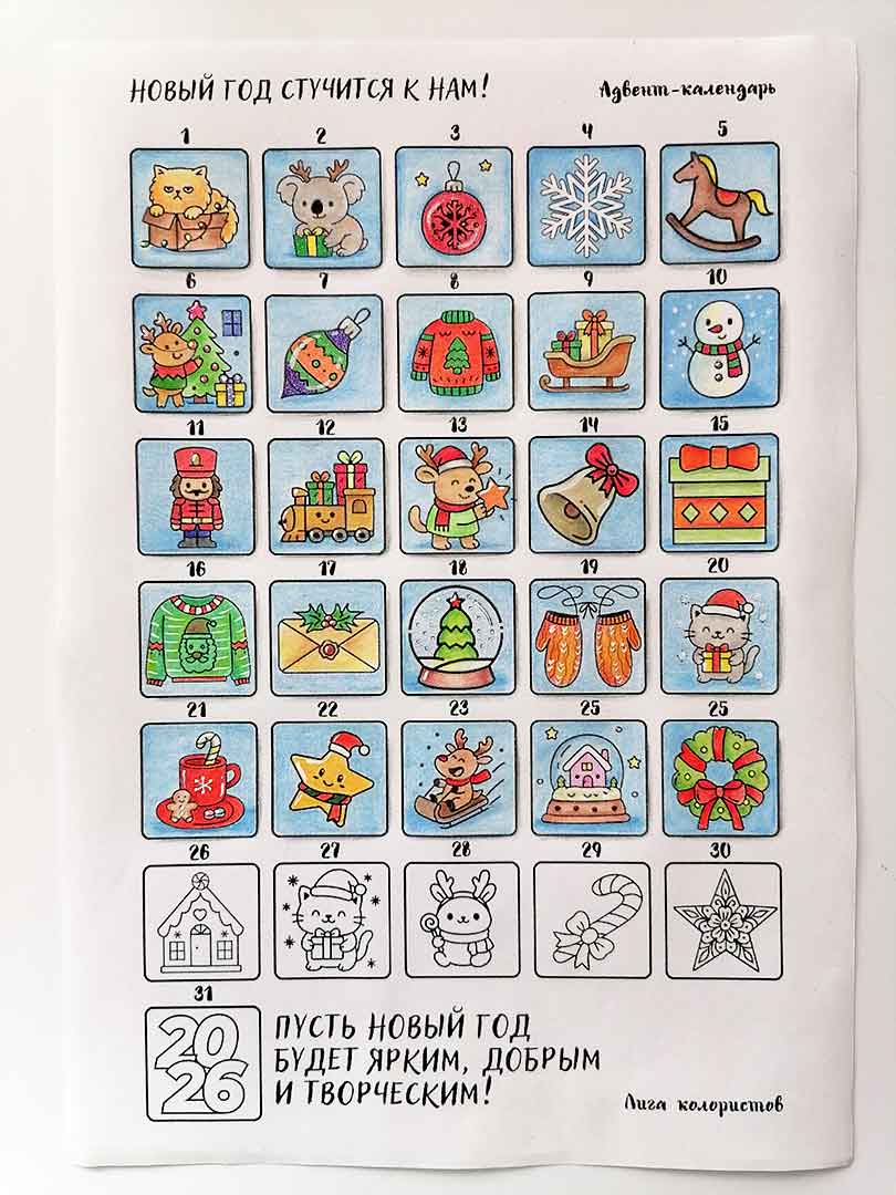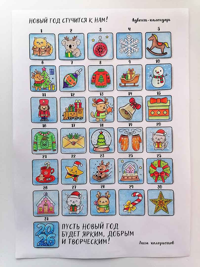 Адвент — раскрашивание декабрь 2025